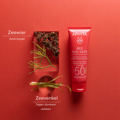 Hoe je vitamine C het beste toepast? Breng 3 druppels van het zeer hoog geconcentreerde vitamine C serum van Apivita aan, laat even intrekken en breng vervolgens de getinte dagcrème met SPF aan.