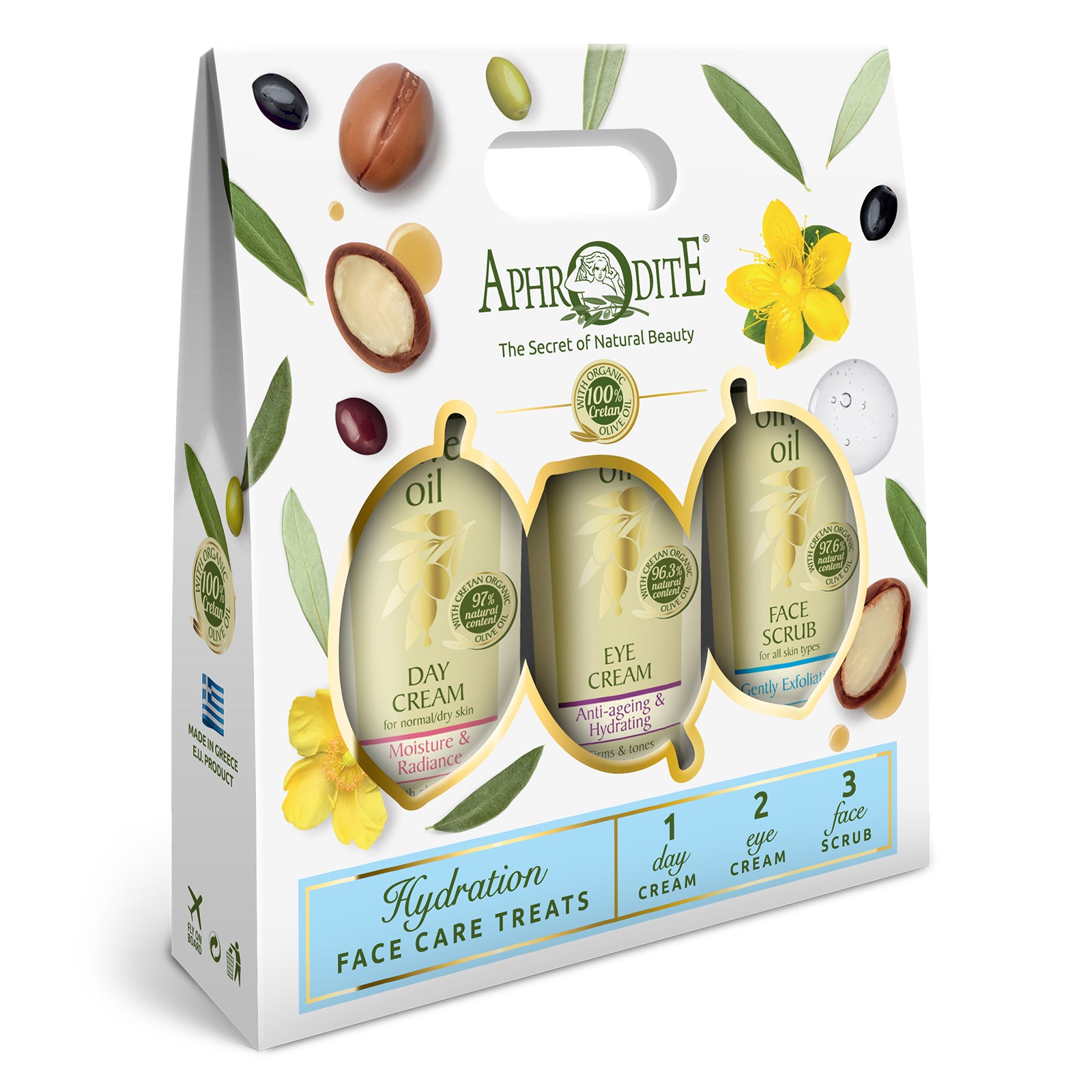 Gezichtsverzorging is heel belangrijk - ook als je op reis bent. Voor extra hydratatie en verzorging, maar ook voor een welverdiend ontspanningsmomentje als je op vakantie bent. Met deze zalige set voor de droge huid van Aphrodite, bestaande uit een dagcrème, oogcrème en scrub, geef je de huid een prachtige glans en verfijnde souplesse.