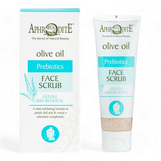 Verminder een vale, vermoeide huid met deze natuurlijke gezichtspeeling van Aphrodite Skincare, boordevol rijke oliën en extracten. De 100% natuurlijke jojoba- en olijfkorrels exfoliëren op milde wijze dode huidcellen en toveren een prachtige, satijnen glans tevoorschijn. Daarnaast lossen de natuurlijke jojobakorrels op. Hierdoor krijgt de huid direct een fantastische hydratatie. Daarnaast is de gezichtsscrub verrijkt met organische olijfolie en verzachtende aloë vera, voor de ultiem gehydrateerde en gevoede huid. Na gebruik van dit treatment is je huid in staat om actieve ingrediënten van andere producten beter op te nemen, zoals de serums en moisturizers van Aphrodite – voor een complete wellnessbeleving.