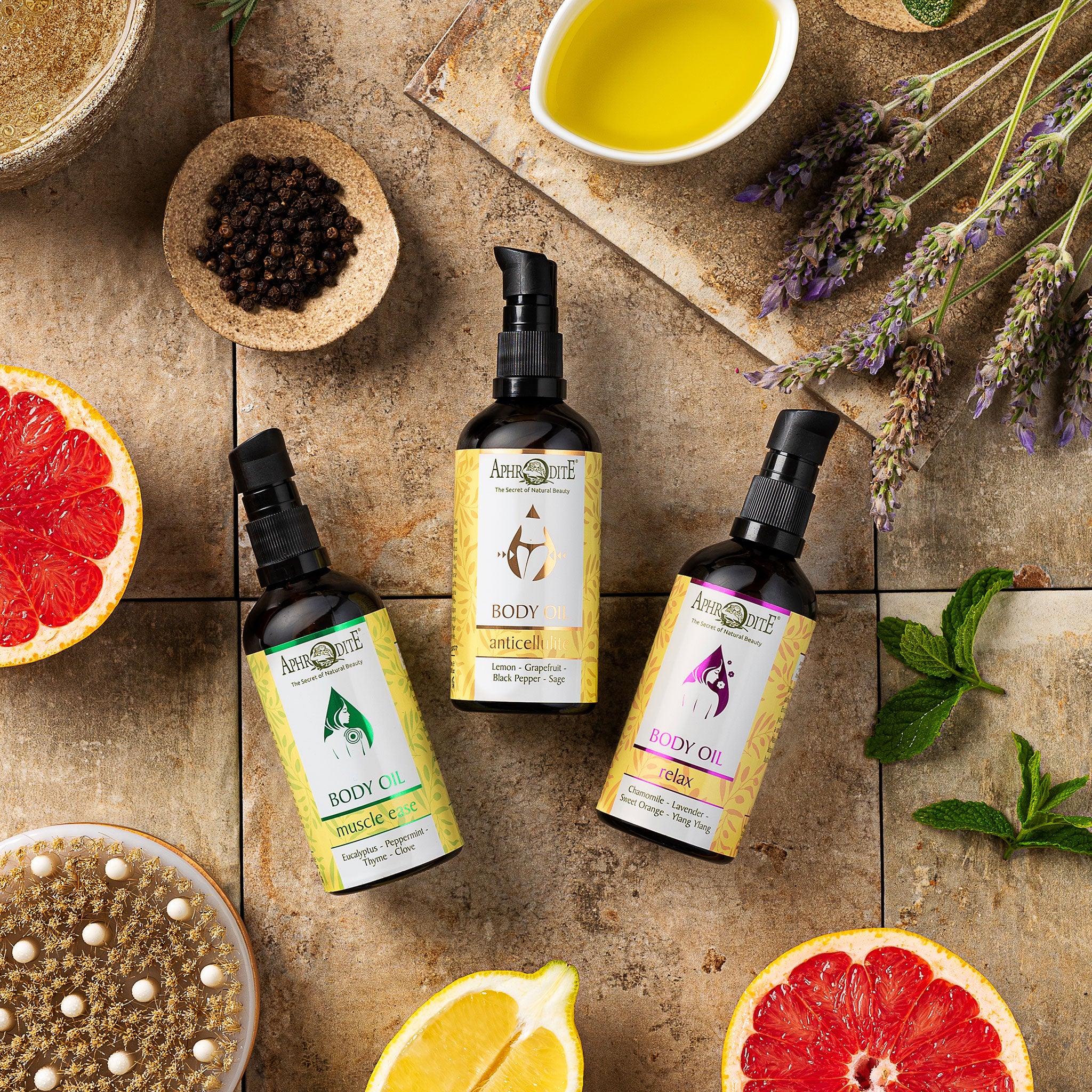 Ylang-ylang-, lavendel- en zoete-sinaasappeloliën zijn zorgvuldig geselecteerd voor de ultieme aromatherapie van Aphrodite Skincare; een heerlijke bad- en/of massageolie met unieke spa-beleving. Kretense organische olijfolie, maar ook de oliën van sint-janskruid, jojoba en calendula zijn samengesteld om een verzorgende basis te vormen die de huidelasticiteit verbeteren en haar weer laten stralen en hydrateren als nooit tevoren. De unieke formule kan als massageolie worden gebruikt, maar ook als heerlijk geurende badolie.