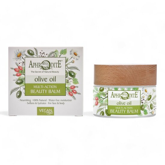 De Multi-Action Beauty Balm van Aphrodite is een veelzijdige huidverzorgingsbalsem, perfect voor de droge en gedehydrateerde huid. Met een rijke, watervrije formule smelt de balsem op de huid en biedt het intensieve voeding en langdurige hydratatie. Deze volledig natuurlijke balsem herstelt de zachtheid van de huid, verzacht droge plekken en bevordert een gezonde glans. Geschikt voor dagelijks gebruik, of wanneer je huid extra verzorging nodig heeft, bijvoorbeeld na blootstelling aan kou of zon. Ideaal voor iedereen die op zoek is naar een effectieve, bewuste verzorging voor gezicht en lichaam.