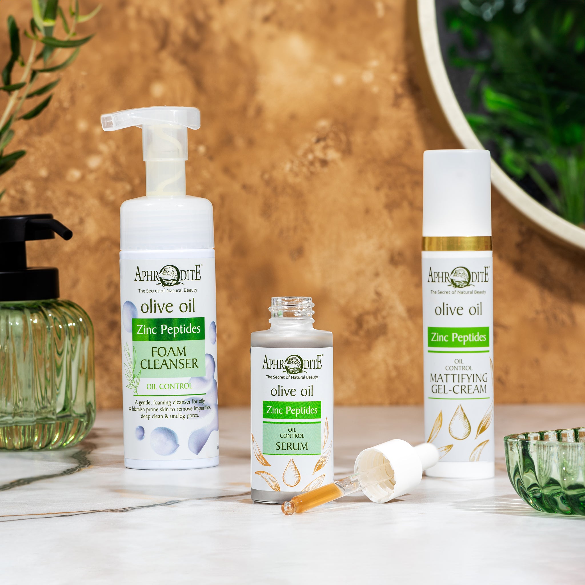 Het Aphrodite Zinc Peptides Oil-Control Serum is speciaal ontwikkeld voor de vette en onzuivere huid en biedt een combinatie van zuiverende en voedende ingrediënten die de huid in balans brengen. Dit serum reguleert de talgproductie met behulp van zink en niacinamide, twee ingrediënten die bekend staan om hun vermogen om onzuiverheden te verminderen en de poriën te verfijnen. Zink helpt ontstekingen te verminderen en heeft een kalmerend effect op de huid, terwijl niacinamide de huidtint egaliseert en roodheid vermindert. Samen zorgen deze ingrediënten ervoor dat de huid een frisse, matte uitstraling krijgt, zonder overtollige glans.