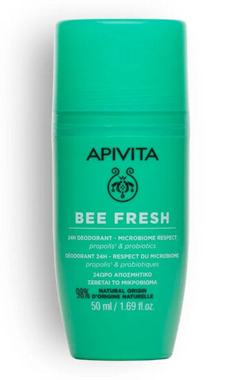 Je huid verzorgen, voorgoed van een vervelende zweetgeur af én de huid verrijken met toonaangevende probiotica? Met de natuurlijke deodorant met probiotica van Apivita geniet je van de meest zachte huid ooit én ben je tot 24 uur per applicatie verlost van nare geurtjes. De geuren worden geneutraliseerd doordat de natuurlijke extracten tijdelijk de bacteriën aanpakken die zweet omzetten in vervelende zwavelgeuren. Hierdoor wordt het natuurlijke perspiratieproces niet verstoord, terwijl je wel 24 uur lang okselfris bent. Verrijkt met propolis en Indische moerbei voor een satijnzachte huid.