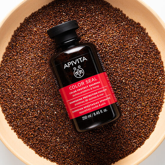Als je van de kapper terugkomt wil je dat je haar zo lang mogelijk prachtig gekleurd blijft. Zonder vaal te worden, zonder te pluizen, zonder een geïrriteerde hoofdhuid. Nee, je wil natuurlijk die coupe van kapperskwaliteit zolang mogelijk behouden. Dat kan met de natuurlijke shampoo voor gekleurd haar van Apivita Griekse cosmetica. Dankzij de kleurbehoudende extracten, regenererende werkstoffen, hydraterende ingrediënten en talrijke antioxidanten bescherm je de haarkleur, verleng je de levensduur van de prachtige kleur en voorkom je het vaal worden van het gekleurde haar. Ook de hoofdhuid wordt heerlijk gekalmeerd en verzorgd en dragen de intens hydraterende ingrediënten bij aan een gezonde huidflora, vochtbalans en sterke haarvezel.