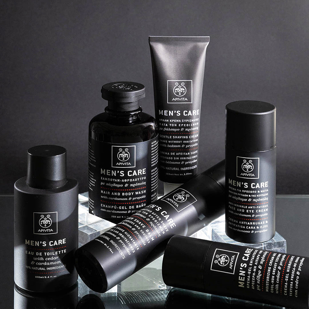 Luxe, donker, daadkracht, expressie en elegantie: ga terug naar de tijd van smokings, rokerige whisky's en sigaren met deze zeer exclusieve eau de toilette voor mannen van Apivita. Het luxe parfum bestaat uit verschillende, 100% natuurlijke geurcomposities die samenkomen tot een verfijnde expressie, geflankeerd door kruidige geuren die geaccentueerd worden door ceder- en sandelhout. De lichte ondertoon van een vleugje lavendel en salie geeft de geur een sprankelende frisheid, terwijl de citrustonen zorgen voor een draaglijke lichtheid die de houttonen laten excelleren. Ben je op zoek naar een absolute topgeur die geen moment verveelt, de hele dag goed aanwezig is en van geuraccenten verandert? Dan is de natuurlijke eau de toilette voor mannen van Apivita een aanwinst voor je geurcollectie.