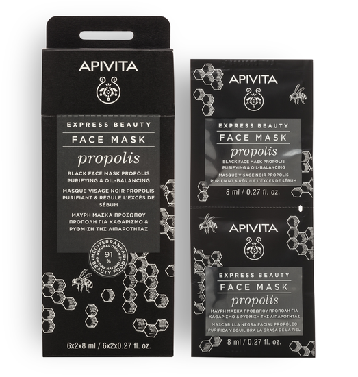 Een vette huid heeft vaak wat extra verzorging nodig: gedurende de dag komt er toch weer vaak een te veel aan talg, wat voor een glimmende aanraking en vettig gevoel zorgt. Ook kunnen de poriën verstoppen, wat weer kan leiden tot onzuiverheden. Door twee keer per week het natuurlijke gezichtsmasker voor de vette huid (op basis van propolis) van Apivita Griekse cosmetica te gebruiken laat je de huid weer stralen zónder dat het gaat glimmen. De kleien gaan actief een overmatige talgproductie tegen, terwijl kerrieplant en een gepatenteerd propolisextract verzorgend en kalmerend werken en effectief onzuiverheden en te veel talg aanpakken. De hoge concentraties panthenol en vitamine E hebben juist een verzachtende en verzorgende werking. Hierdoor kan de huid zichzelf beter herstellen en geniet je binnen no-time van een prachtige, egale en matte huid.