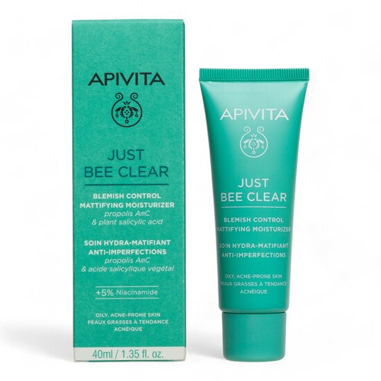 De Apivita Blemish Control Mattifying Moisturizer biedt een allesomvattende oplossing voor een vette en acnegevoelige huid. Deze ultra-lichte gel-crème zorgt voor langdurige hydratatie zonder een vettig gevoel achter te laten. Verrijkt met Apivita's exclusieve Propolis AmC-complex, werkt het doelgericht tegen bacteriën die acne veroorzaken (C. acnes), terwijl het een gezonde vochtbalans in de huid behoudt. Plantaardig salicylzuur werkt als een milde, natuurlijke exfoliant en voorkomt verstopte poriën, wat bijdraagt aan een heldere en egale huid.