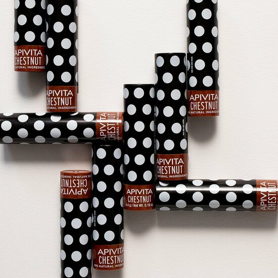 Een unieke lippenbalsem met een fantastisch subtiele kleur. Geniet van stralende lippen én een sexy matte chocoladetint met de natuurlijke lippenbalsem met chocoladetint van Apivita Griekse cosmetica. De subtiele geur van vers gepofte kastanjes, aangevuld met de fijnste wassen, moisturizers en vetzuren zorgen voor diepe verzorging van de lippen. Hierdoor ogen ze voller en krijgen ze een matte chocoladefinish. Voor de perfecte verzorging én een prachtige look.