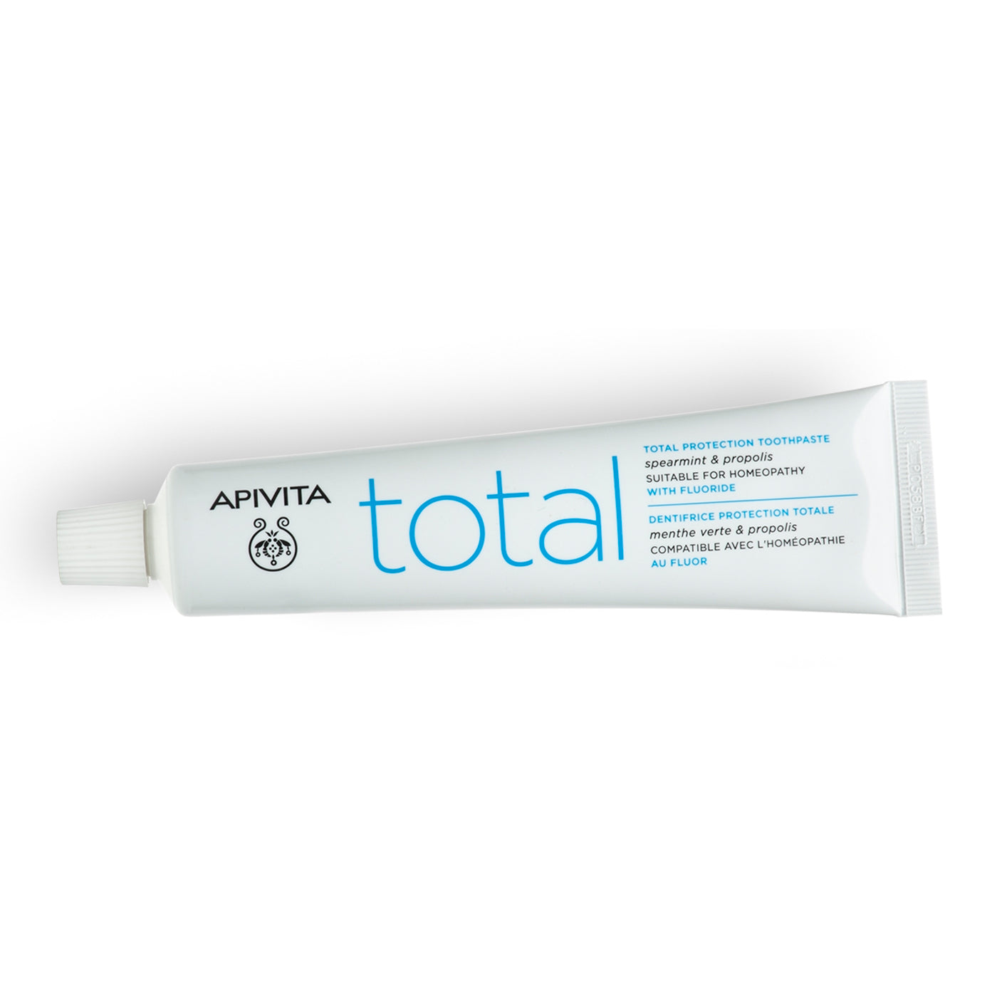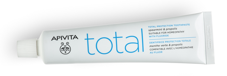 Het is essentieel om dagelijks je tanden goed te poetsen. Zo geniet je een leven lang van sterke tanden, goed verzorgd tandvlees en een frisse adem. Voorkom het ophopen van tandplaque door twee keer per jaar naar de tandarts en/of mondhygiënist te gaan en gebruik de allerbeste natuurlijke tandpasta voor het dagelijks onderhoud. De natuurlijke tandpasta Total Protection van Apivita Griekse cosmetica verfrist de adem met een blend aan essentiële oliën zoals mirre, groene munt en citroen, bescherm je het gebit tegen gingivitis en gaatjes met 1450ppm fluoride, salie, propolis en versterk je het glazuur dankzij xylitol en calciumglycerofosfaat. Hiermee verzorg je de mondholte, de bacteriën in de mond, het tandvlees en de tanden, voor het beste dagelijkse onderhoud van je gebit.
