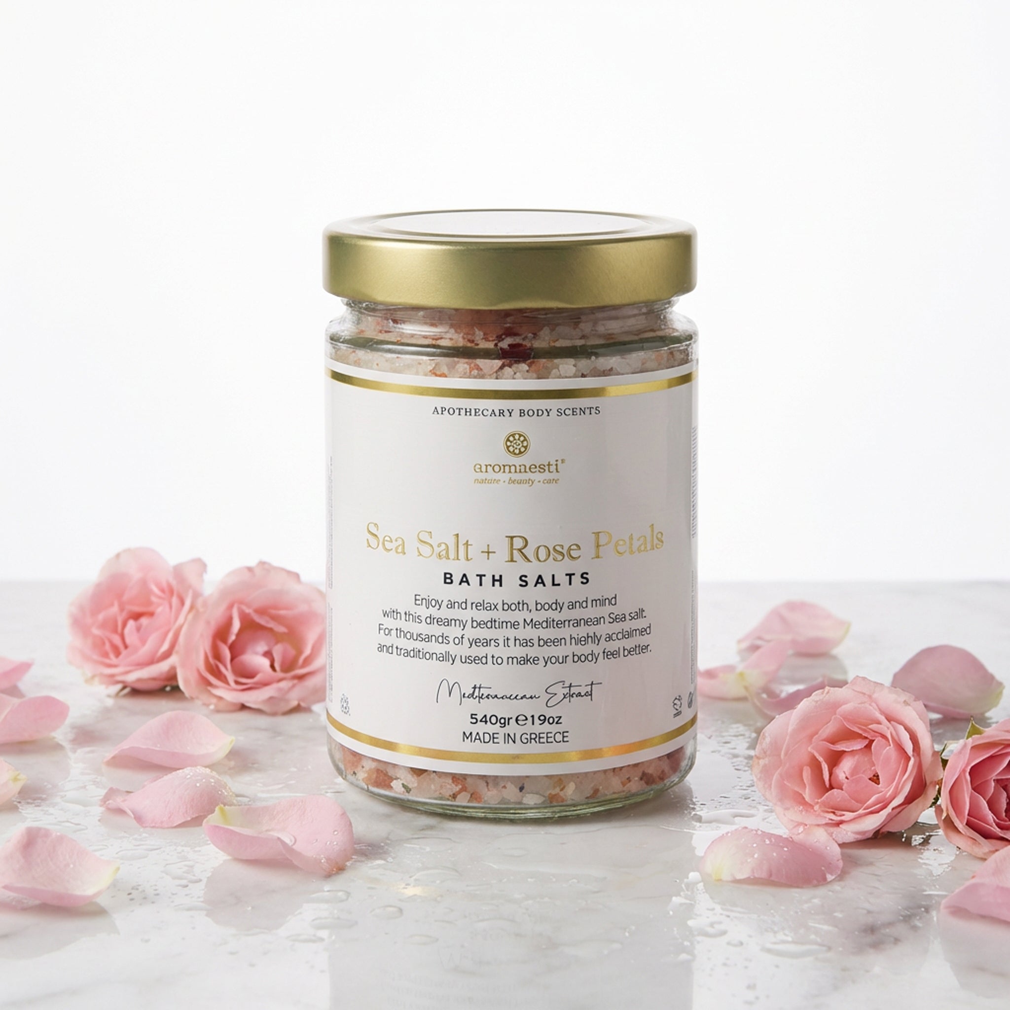 Geniet van intense romantiek en pure luxe met het handgerolde badzout met gedroogde rozenblaadjes. Het natuurlijke parfum van verse rozen verwelkomt je als je alleen al de verpakking openmaakt. Het natuurlijke parfum is met de hand gemengd, samen met de oliën en rozenblaadjes, door het badzout. Daarom is de korrel van dit natuurlijke badzout groter dan bij machinaal gemengd badzout. Hierdoor blijft de korrel intact, krijg je geen gruis en kan het langzaam oplossen in het roze wordende water. Het natuurlijke badzout is ideaal als je snel last hebt van een droge, gevoelige huid, of even helemaal wil ontspannen. Geniet van de pure rijkdom van de essentiële oliën, rozenblaadjes en het zout. Voor een satijnzachte en delicaat geparfumeerde huid.