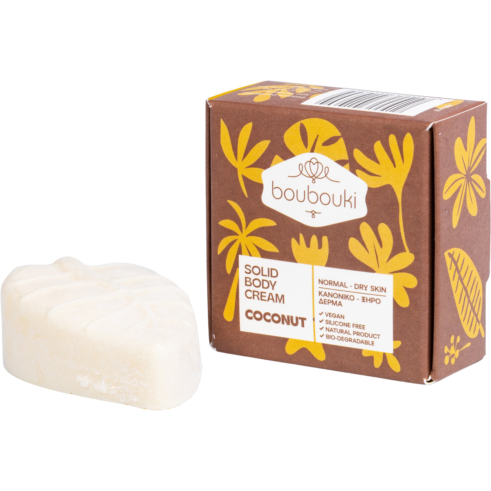 Deze volle body cream bar van Boubouki is een ware traktatie voor de droge en normale huid. De rijke combinatie van biologische kokosolie, sheaboter en cacaoboter smelt onmiddellijk bij contact met de huid en vormt een voedende, beschermende laag die langdurig hydrateert zonder vettig na te voelen.