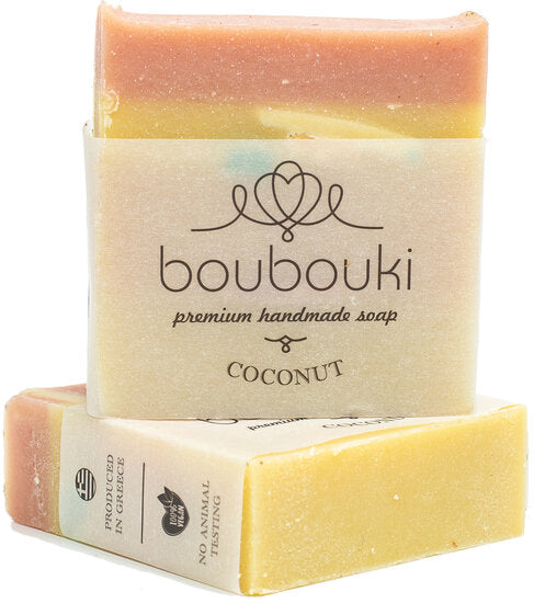 Het unieke van de zepen van Boubouki is dat John (Giannis zoals hij heet) het helemaal alleen en helemaal met de hand maakt. Er komt geen grote fabriek aan te pas; hij maakt alles zelf in zijn eigen atelier. De beste zeepbasis, de beste oliën en de fijnste, 100% natuurlijke geuren worden gemengd en uitgehard voor een onweerstaanbare zeep zoals je die nog nooit hebt ervaren. Want waar vind je nu nog een zeep die altijd anders is, maar nog belangrijker, de huid zichtbaar herstelt, kalmeert en hydrateert? Overtuig jezelf en geniet van écht ongekende kwaliteitszeep - het zal je nieuwe passie onder de douche worden: beloofd.De Boubouki handgemaakte zeep Coconut is een ware zomerse sensatie voor de zintuigen, een uitnodiging om je te verliezen in een exotisch paradijs vanaf het moment dat je de verpakking opent. Deze ambachtelijk vervaardigde zeep combineert de rijke, voedende eigenschappen van natuurlijke ingrediënten met de onweerstaanbare geur van verse kokosnoot, waardoor elke douchebeurt voelt als een ontsnapping naar een zonovergoten strand. De luxueuze schuimlaag die de zeep creëert, omhult de huid zachtjes, terwijl de subtiele geur je meeneemt op een reis naar een zomerse bestemming, waar de zon altijd schijnt en de golven zachtjes breken op het zand. De Boubouki Coconut zeep is niet alleen een genot voor de huid, maar ook voor de ziel, en biedt een moment van pure ontspanning en verfrissing. Het is de perfecte manier om een vleugje zomer toe te voegen aan je dagelijkse verzorgingsritueel, waardoor je je verfrist, gehydrateerd en klaar voelt om de wereld tegemoet te treden met de energie van de meest zonnige dagen.