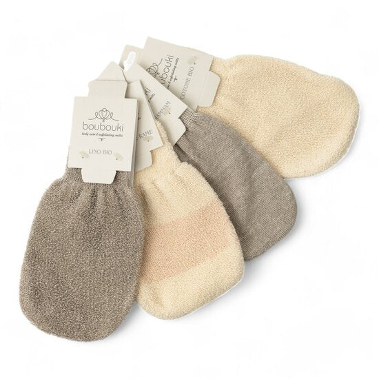 De Boubouki Biologische Hamam Scrubhandschoen is ontworpen voor een intensieve scrubervaring die de bloedsomloop stimuleert en dode huidcellen verwijdert. De handschoen is biologisch gecertificeerd en zacht genoeg voor de gevoelige huid, ideaal voor het verbeteren van de huidtextuur.