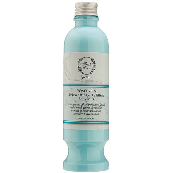 De Fresh Line Rejuvenating & Uplifting Body Milk is een lichte, snel absorberende lotion die de huid diep hydrateert en een fris, energiek gevoel achterlaat. Deze body milk is verrijkt met voedende amandelolie, olijfolie en aloë vera, die de huid soepel en zacht maken zonder een vettig laagje achter te laten. De natuurlijke extracten van citrusvruchten, zoals sinaasappel en grapefruit, geven een opwekkende geur die de zintuigen stimuleert en vermoeidheid tegengaat. Ideaal voor dagelijks gebruik, vooral na het douchen, om de huid gehydrateerd en stralend te houden.