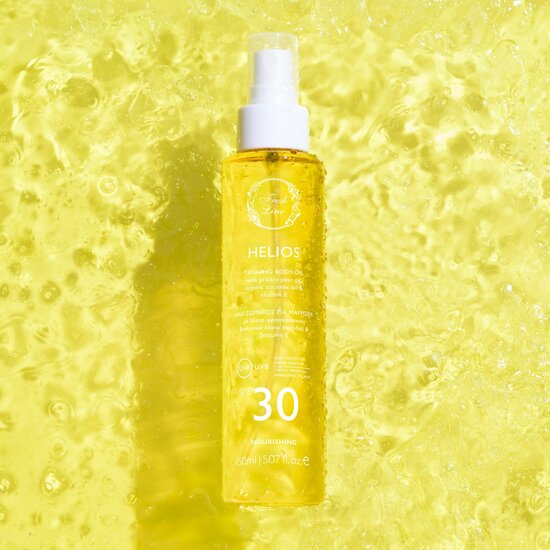De Fresh Line Helios Tanning Body Oil SPF30 biedt een ultravoedende ervaring voor je huid, terwijl het zorgt voor een subtiele, veilige zonnige kleur. Deze waterbestendige tanning oil heeft een zijdezachte textuur en een geur die de zoete geur van de zomer oproept. Verrijkt met een mix van natuurlijke oliën, voedt deze olie de huid, benadrukt je teint en zorgt voor een stralende uitstraling. Met een gemiddelde beschermingsfactor is het ideaal voor gebruik tijdens zonnige dagen, terwijl je huid zo goed mogelijk beschermd blijft tegen schadelijke UV-stralen.