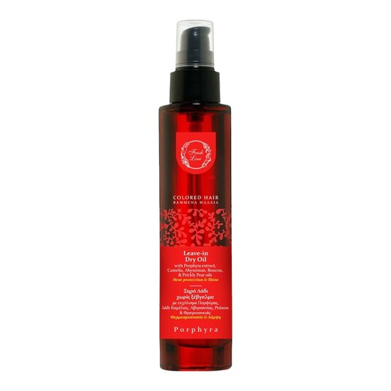 De Fresh Line Porphyra Leave-In Dry Oil Heat Protection combineert voedende oliën zoals prickly pear en Abyssinian olie om haarbeschadiging door hitte en kleurvervaging tegen te gaan. Het beschermt tegen frizz en heeft antioxidanten die beschermen tegen milieu-invloeden, met een subtiele geur.