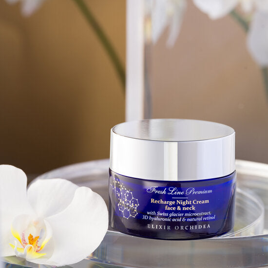 Geef je huid de ultieme verzorging tijdens de nacht met Fresh Line Recharge 50+ Face & Neck Night Cream. Deze rijke, voedende crème is speciaal ontwikkeld voor de rijpere huid en helpt tekenen van veroudering te verminderen terwijl je slaapt. Dankzij krachtige anti-aging ingrediënten zoals bakuchiol, hyaluronzuur en biologische oliën wordt de huid diep gevoed, waardoor ze steviger en gladder aanvoelt. Sheaboter en macadamia-olie hydrateren intens, terwijl orchidee-extract en lactobacillus-ferment de huid helpen regenereren en versterken. Ontwaak met een frisse, gehydrateerde en zichtbaar jongere huid!
