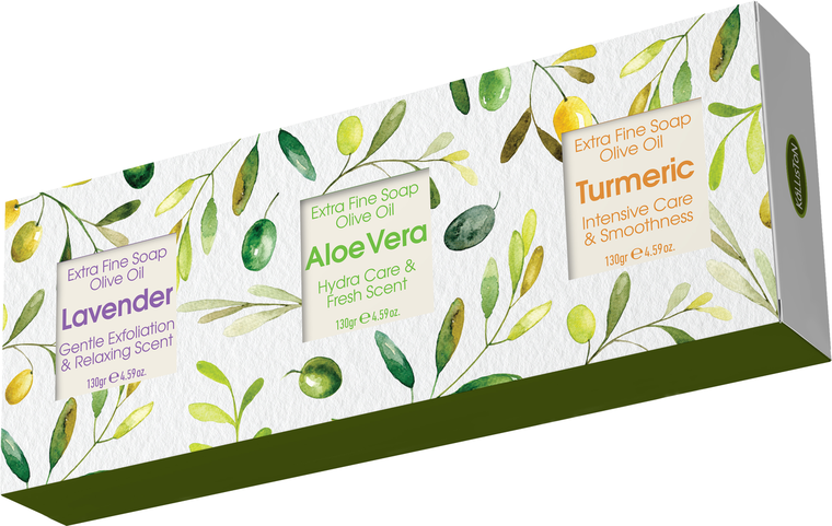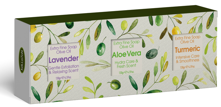 Drie fantastische luxe zepen van Kálliston, verpakt in een luxe geschenkset. De natuurlijke zepen zijn helemaal vrij van sulfaten, parabenen, palmolie en siliconen maar bevatten uitsluitend verzeepte olijf- en kokosolie. Verkwikkend voor de huid, want het laat een beschermlaagje achter, waardoor de huid zich beter kan hydrateren en verzorgen. Daarnaast hebben de zepen ook nog eens een heerlijke, natuurlijke geur. Een mooie, prachtig gehydrateerde en rijk verzorgde huid; je vindt het in de prachtige cadeauset.
