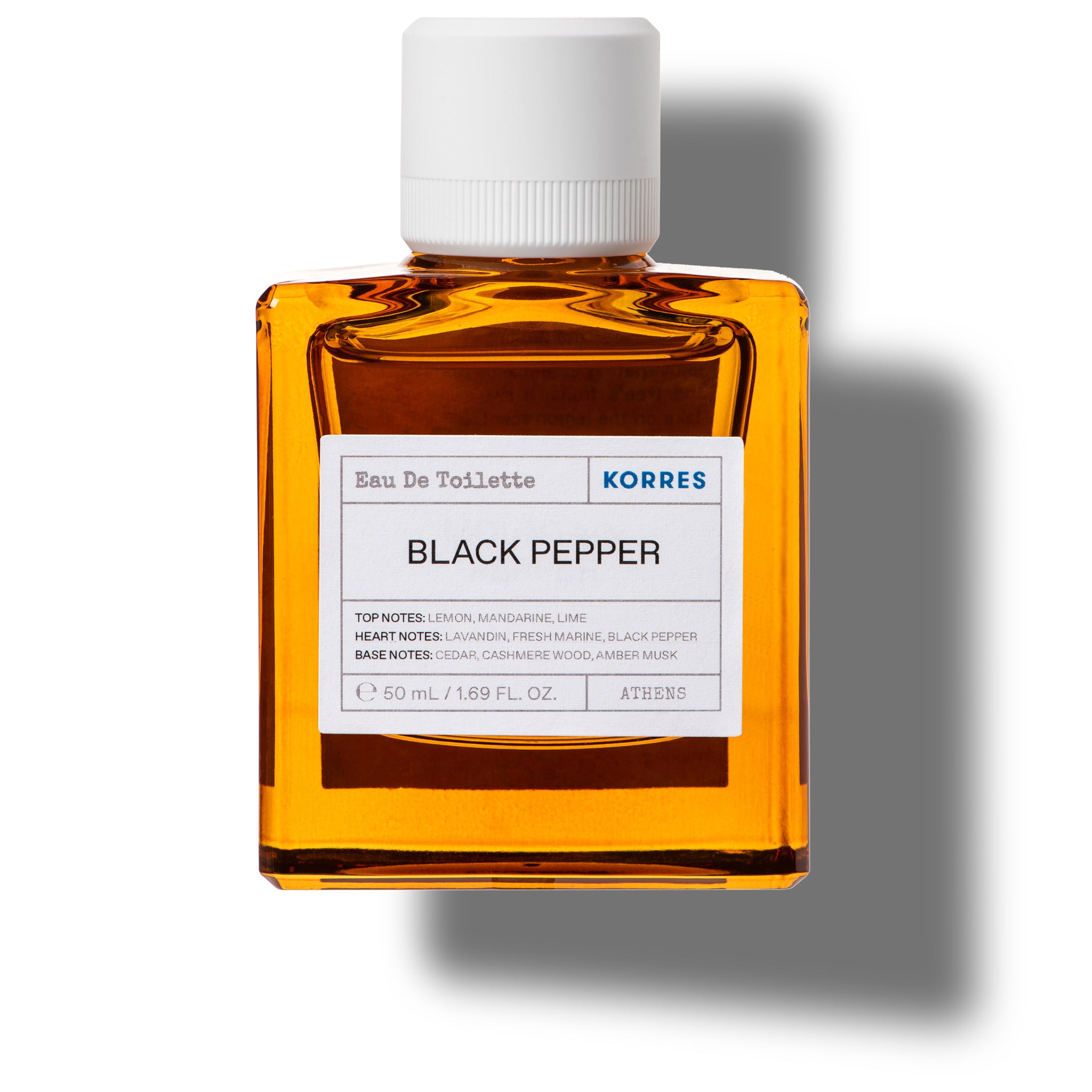 Korres Black Pepper Eau de Toilette is een uitgesproken en moderne geur die kracht en verfijning combineert. De topnoten van citroen, mandarijn en limoen zorgen voor een energieke, verfrissende opening die meteen de zintuigen prikkelt. Het hart verrast met lavandin, een frisse maritieme noot en de kruidige warmte van zwarte peper – gedurfd en verleidelijk. De basis van ceder, cashmere hout en amber musk geeft de geur een diepe, sensuele afronding die lang blijft hangen. Een geur die zelfvertrouwen uitstraalt en perfect is voor wie indruk wil maken.