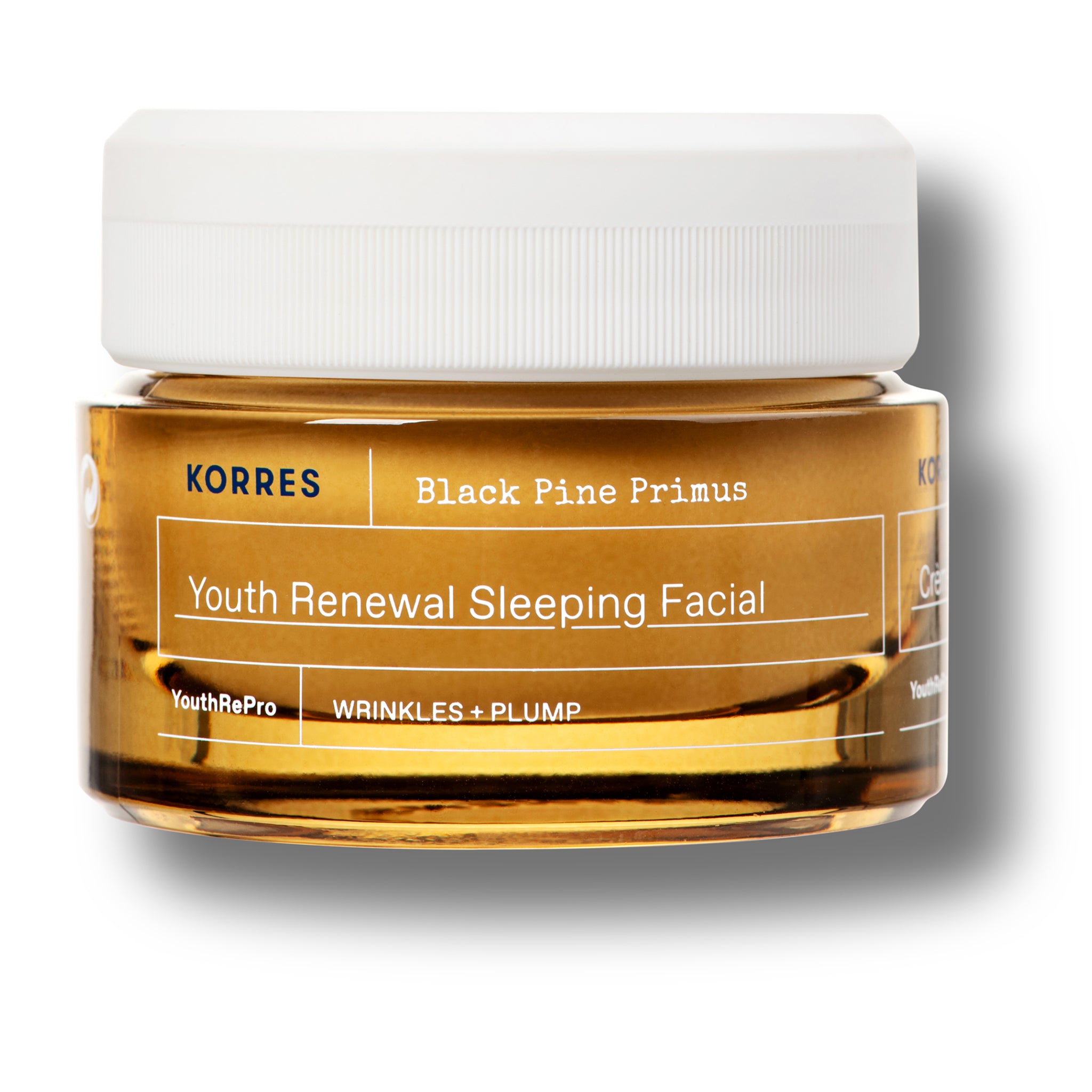 De Black Pine Primus Youth Renewal Sleeping Facial Night Cream van Korres is een rijke, herstellende nachtcrème die de huid tijdens de nacht diep voedt en helpt tekenen van veroudering te verminderen. De fluweelzachte textuur smelt in de huid en werkt terwijl je slaapt aan herstel en vernieuwing, zodat je wakker wordt met een frisse en stralende teint.