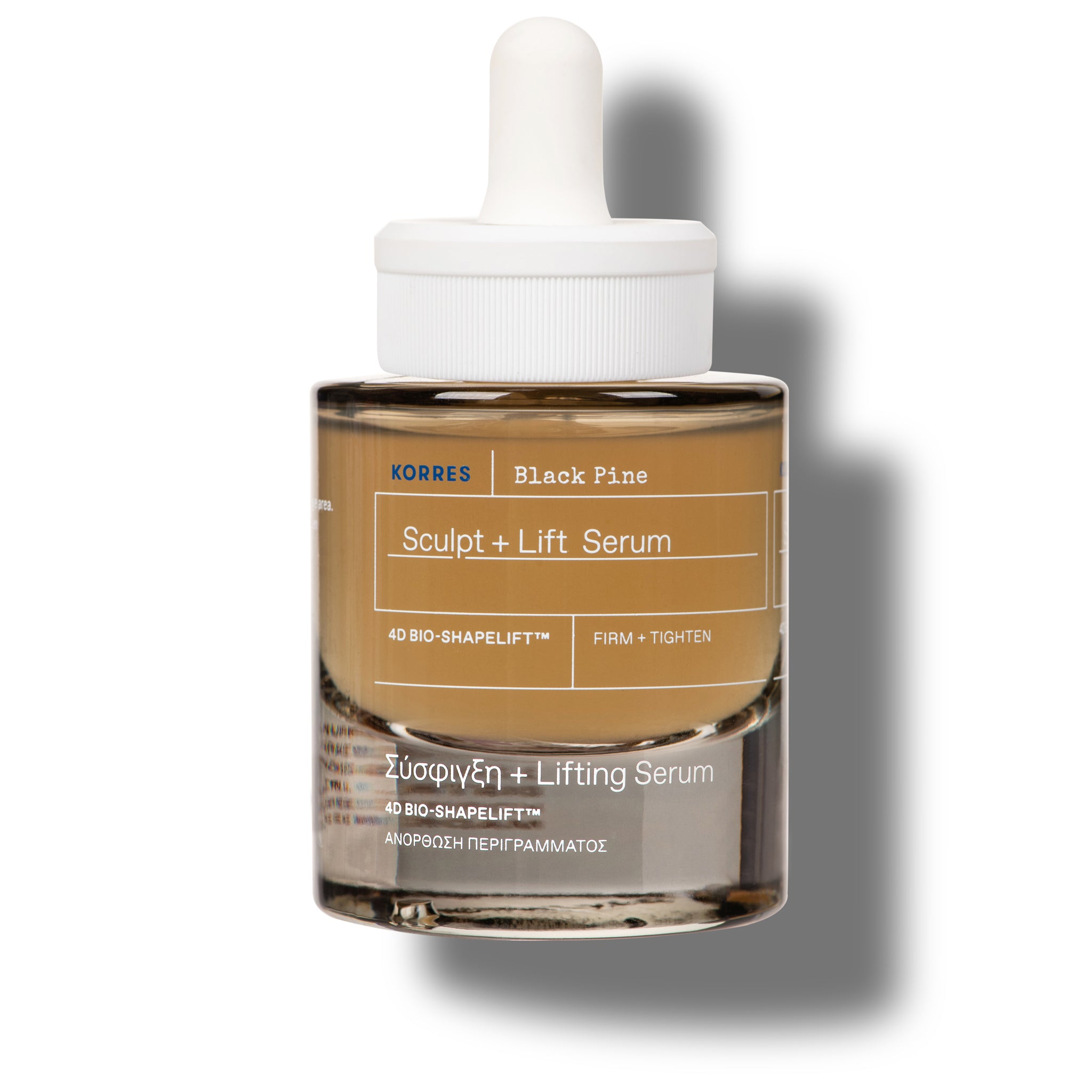 Dit krachtige Black Pine Sculpt + Lift Serum van Korres is ontwikkeld om de huid zichtbaar te liften en te verstevigen, met bijzondere aandacht voor de gezichtscontouren. Het combineert zwarte den-extract met geavanceerde peptiden en hyaluronzuur, waardoor de huid intens wordt ondersteund bij verlies van elasticiteit en stevigheid. De lichte, zijdezachte textuur trekt snel in en vormt de perfecte basis onder je dag- of nachtcrème.