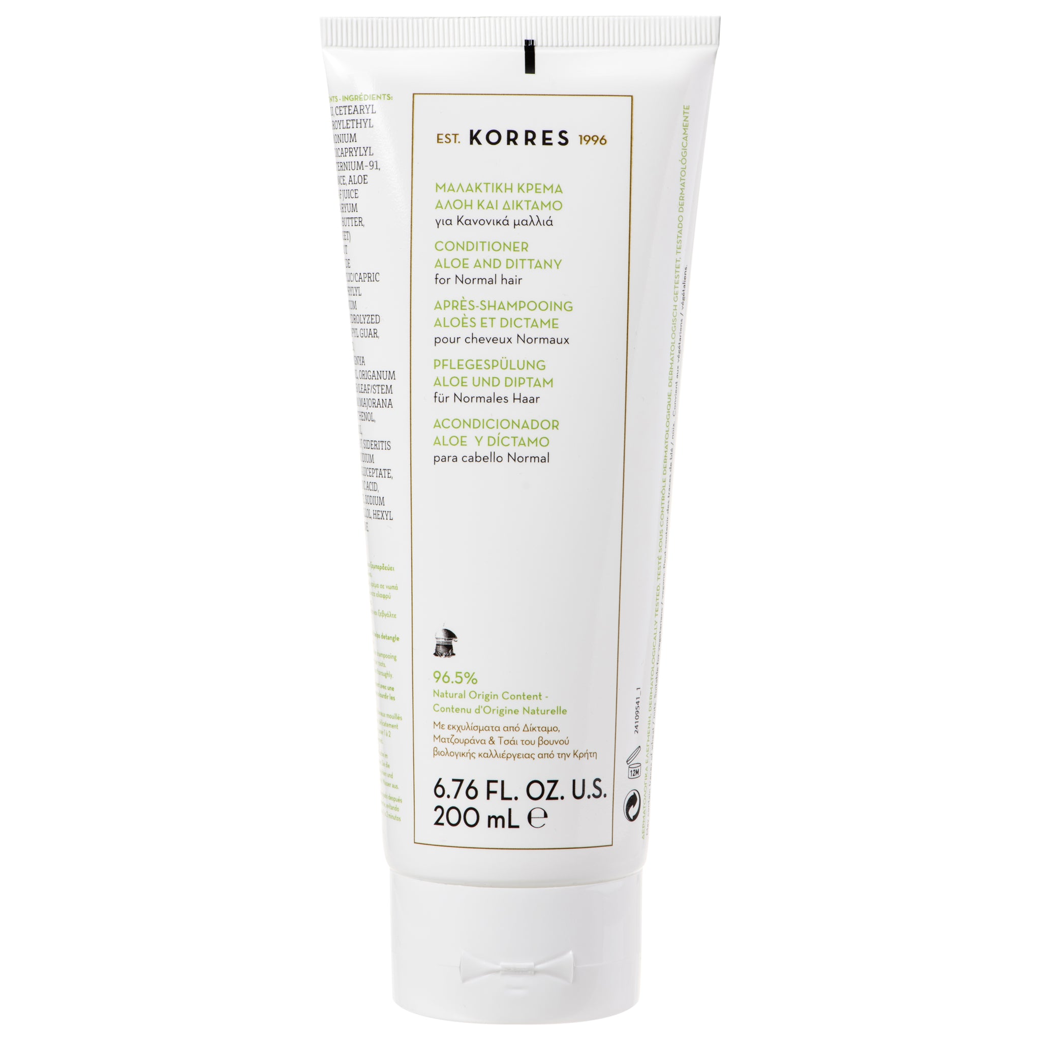 De Aloe & Dittany Conditioner van Korres is speciaal ontwikkeld voor normaal haar en geeft direct zachtheid en glans. De lichte, romige formule maakt het haar soepel en gemakkelijk doorkambaar, zonder te verzwaren of vet aan te voelen.