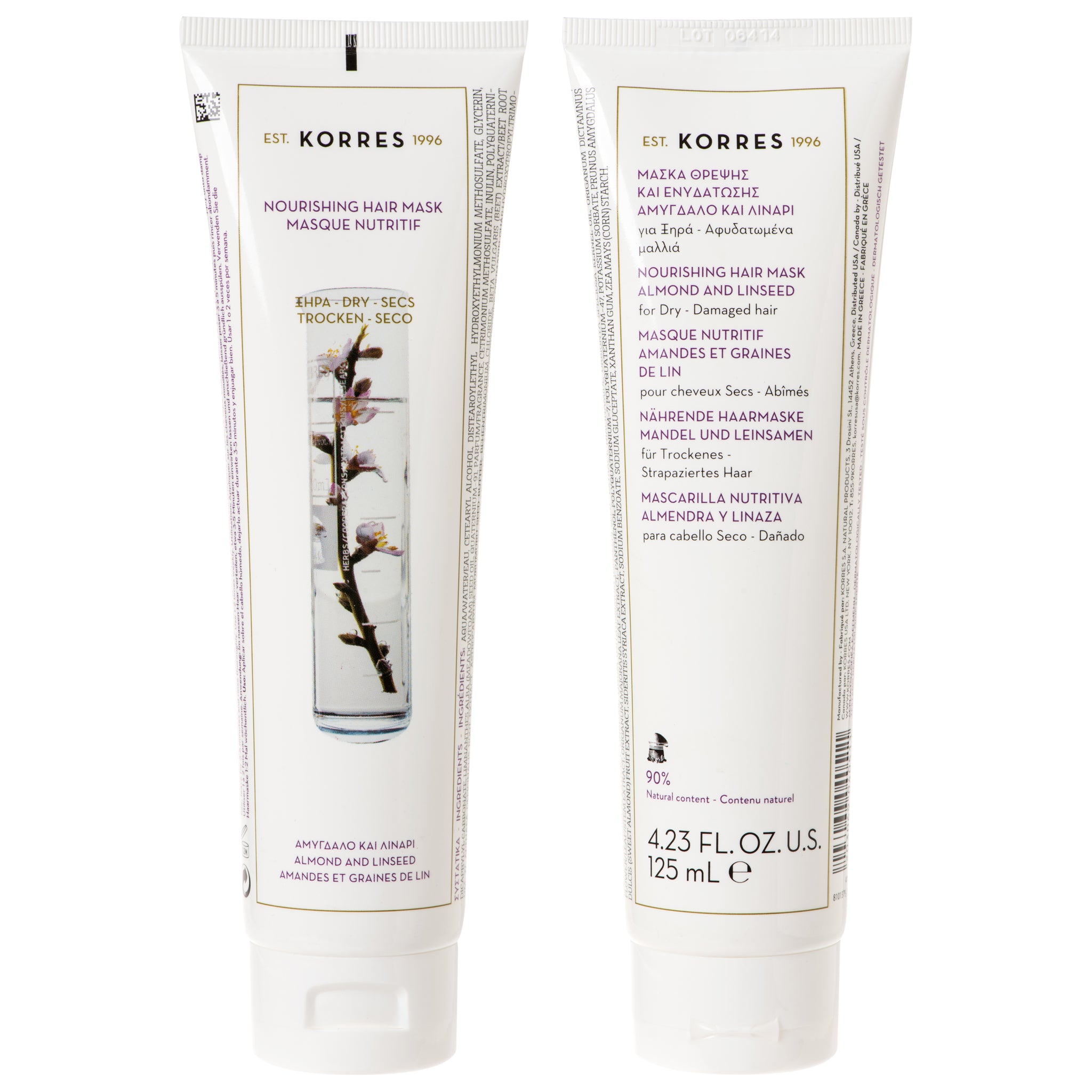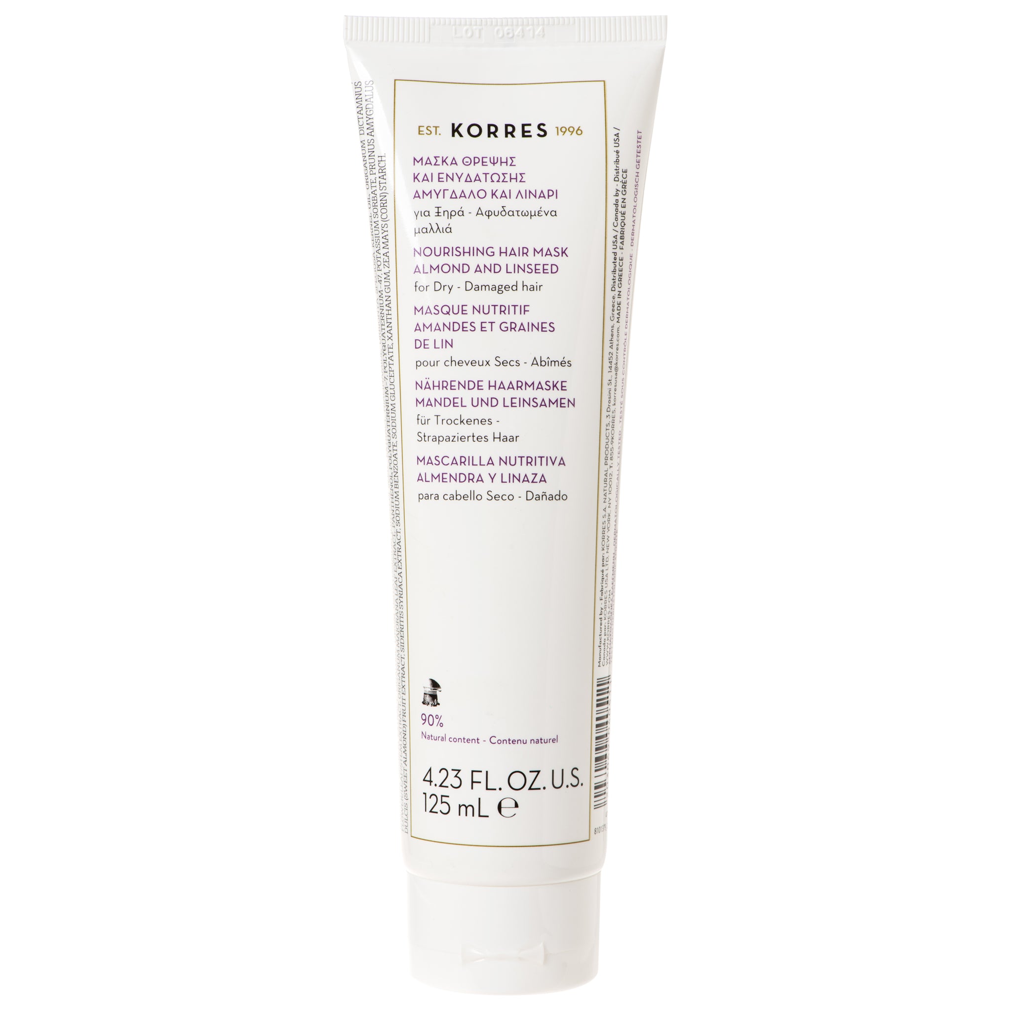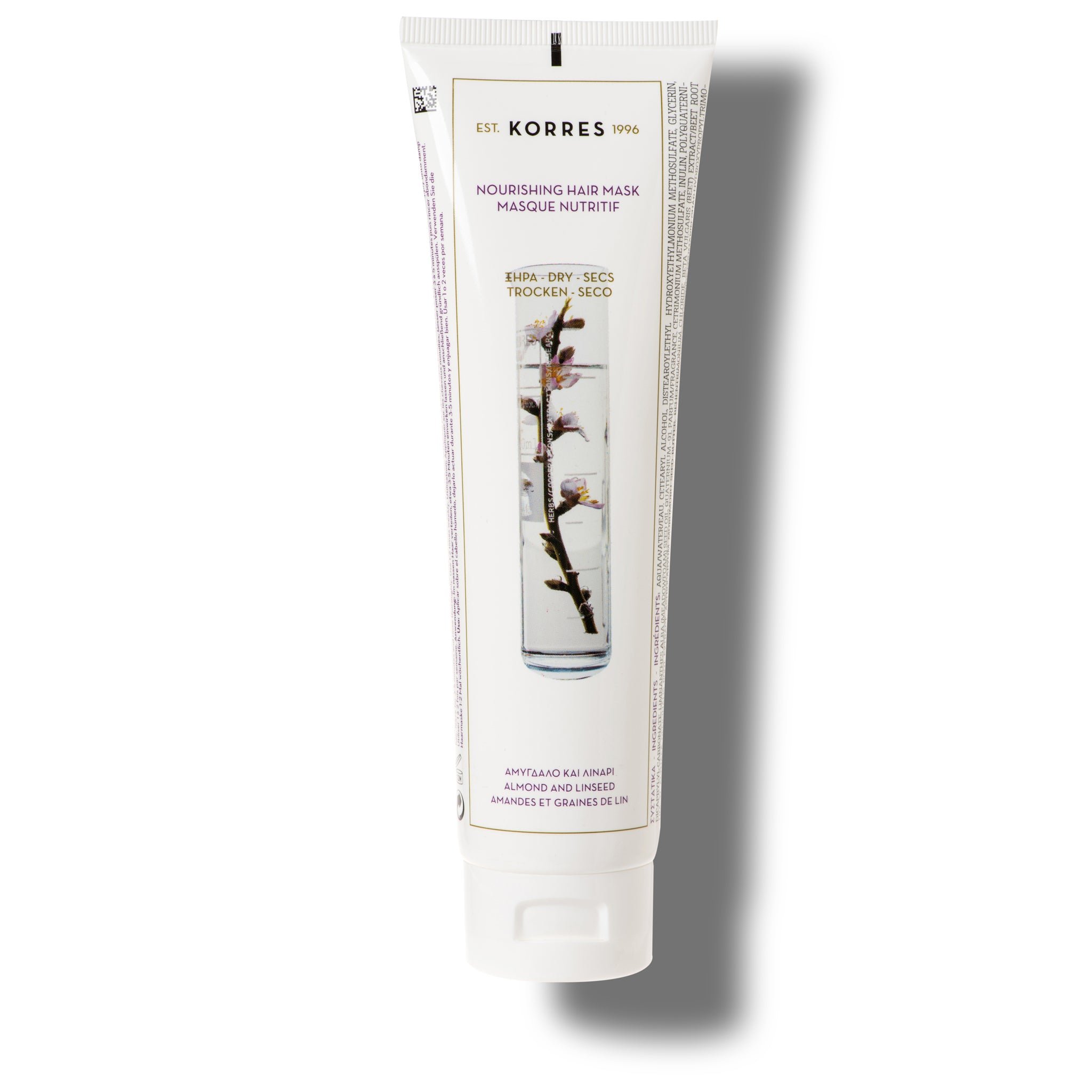 Het Almond Oil & Linseed Hair Mask van Korres is een rijke, romige behandeling die diep inwerkt op droog en beschadigd haar. Dit intensieve masker voedt de haarvezel van binnenuit, helpt breuk te verminderen en herstelt de natuurlijke glans.