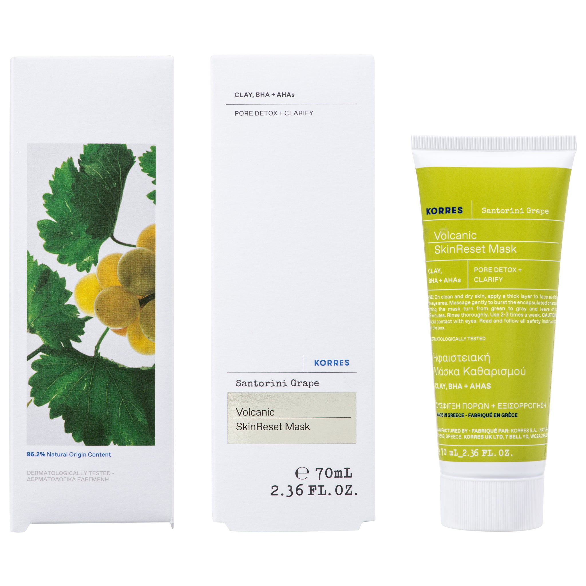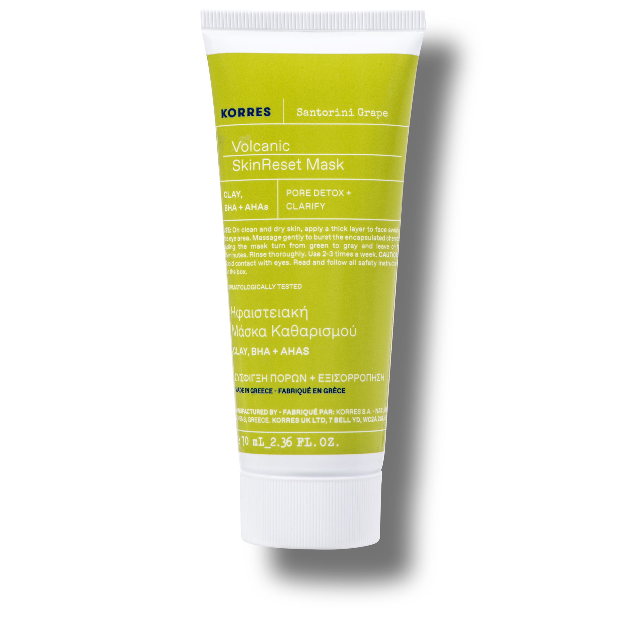 Het Santorini Grape Volcanic Skinreset Mask van Korres is een intensief zuiverend masker dat de huid helpt te resetten en te verfrissen. Dankzij een combinatie van vulkanisch zand en actieve klei verwijdert dit masker overtollig talg en onzuiverheden, terwijl de huidtextuur verfijnd wordt en poriën zichtbaar worden geminimaliseerd.