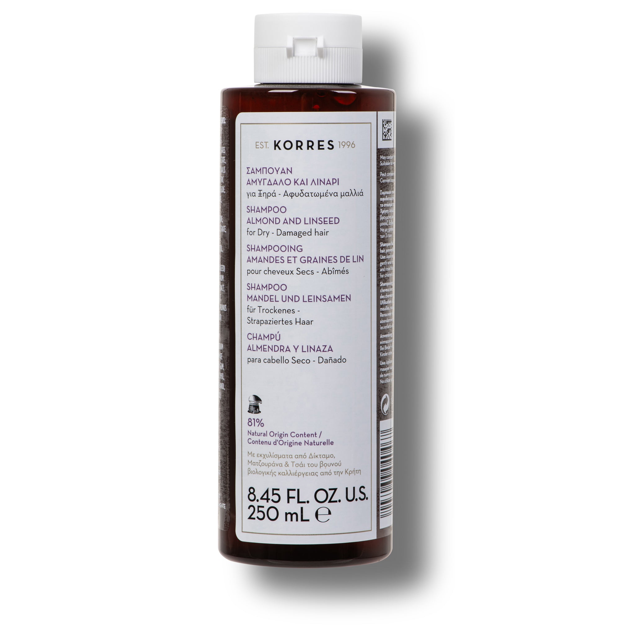 De Almond & Linseed Shampoo van Korres is speciaal ontwikkeld voor droog en beschadigd haar dat intensieve verzorging nodig heeft. Deze zachte shampoo verwijdert onzuiverheden en productresten zonder de natuurlijke balans van de hoofdhuid te verstoren, terwijl het haar wordt gevoed en versterkt.