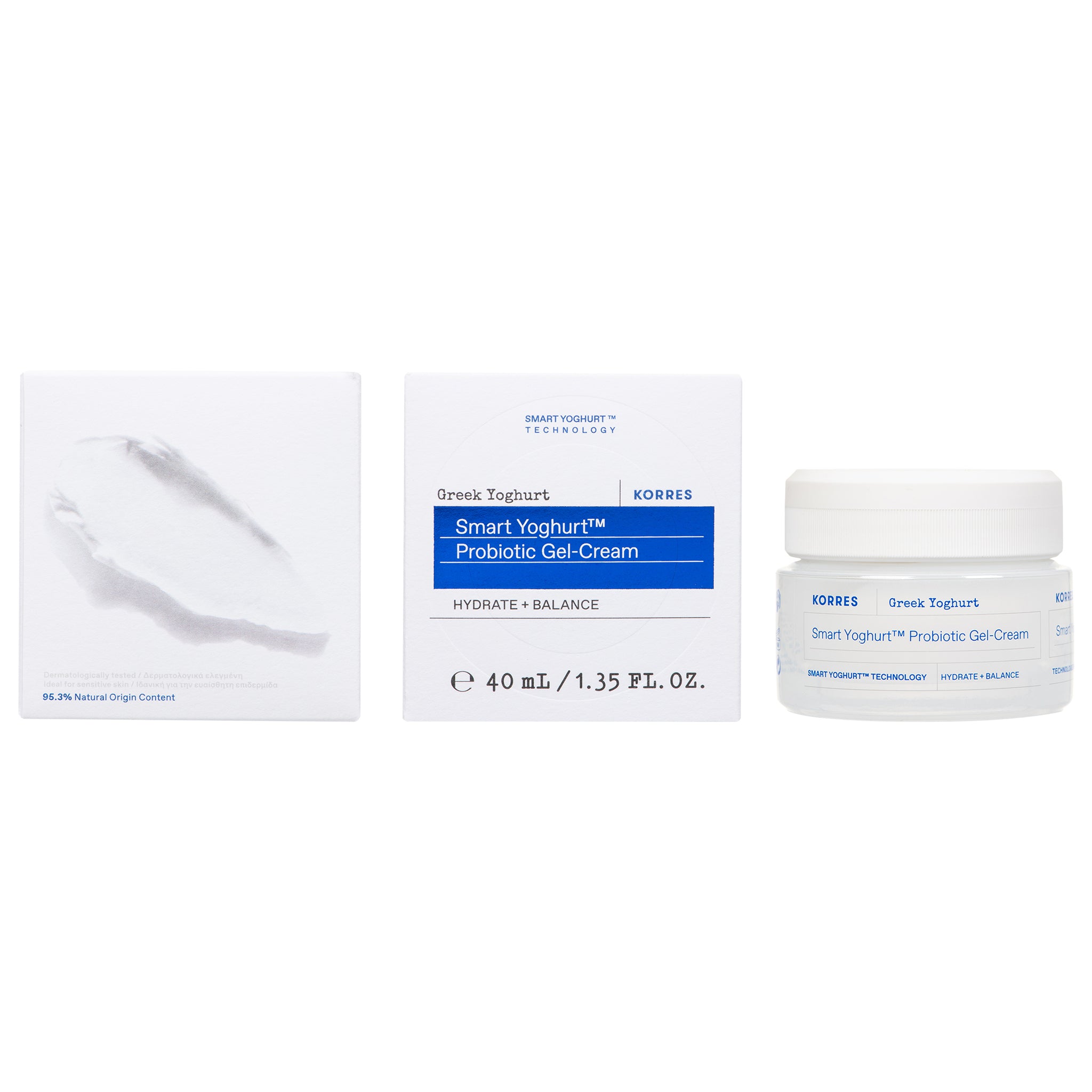 De Smart Yoghurt Probiotic Gel-Cream van Korres is een luchtige gezichtscrème die de intensieve voeding van Griekse yoghurt en probiotica combineert met een frisse geltextuur. De crème trekt snel in en geeft de huid direct comfort en hydratatie, zonder te plakken of te verzwaren.