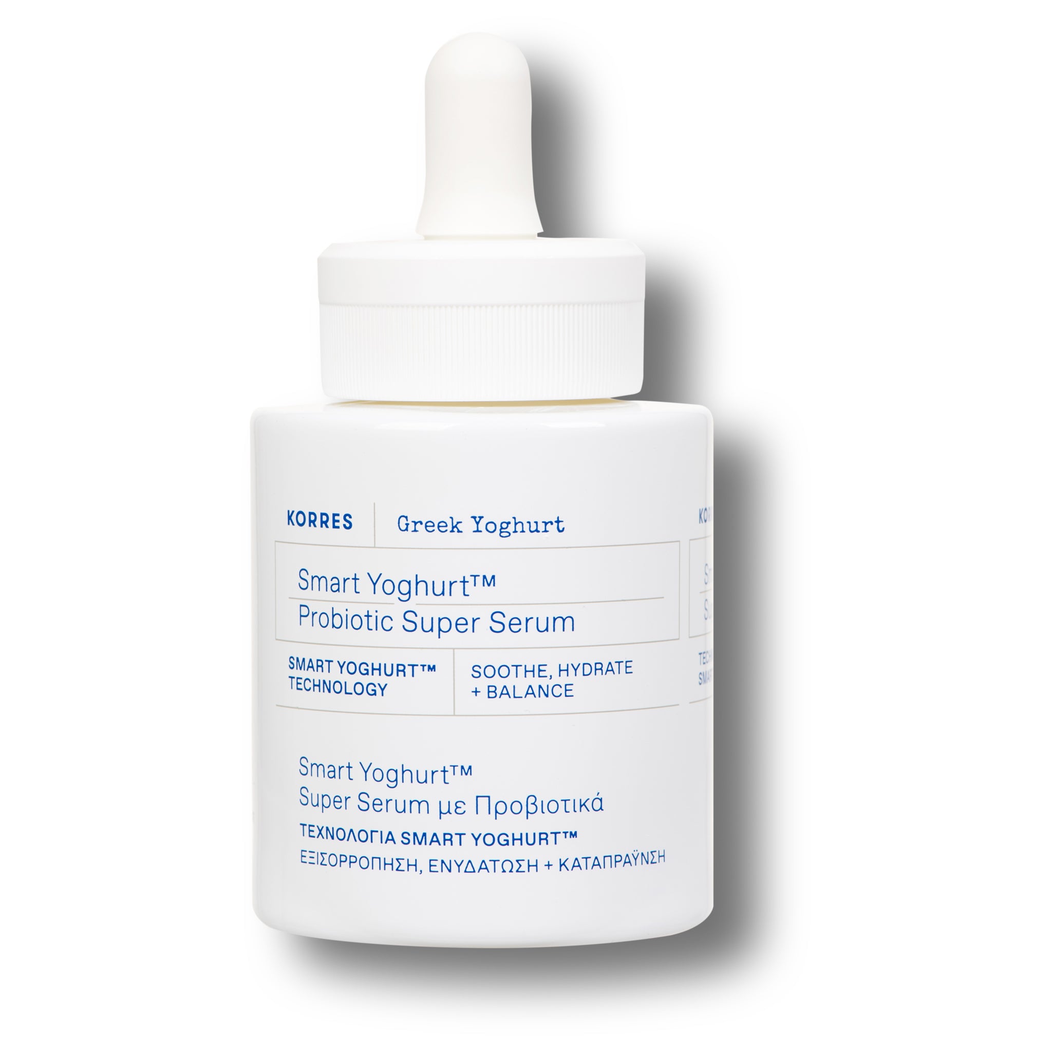 Het Smart Yoghurt Probiotic Super Serum van Korres is een krachtig, lichtgewicht serum dat de huidbarrière versterkt en helpt de natuurlijke balans te herstellen. Met een unieke mix van probiotica, Griekse yoghurt en prebiotische ingrediënten voedt dit serum de huid van binnenuit en zorgt het voor een gezondere, veerkrachtigere uitstraling.