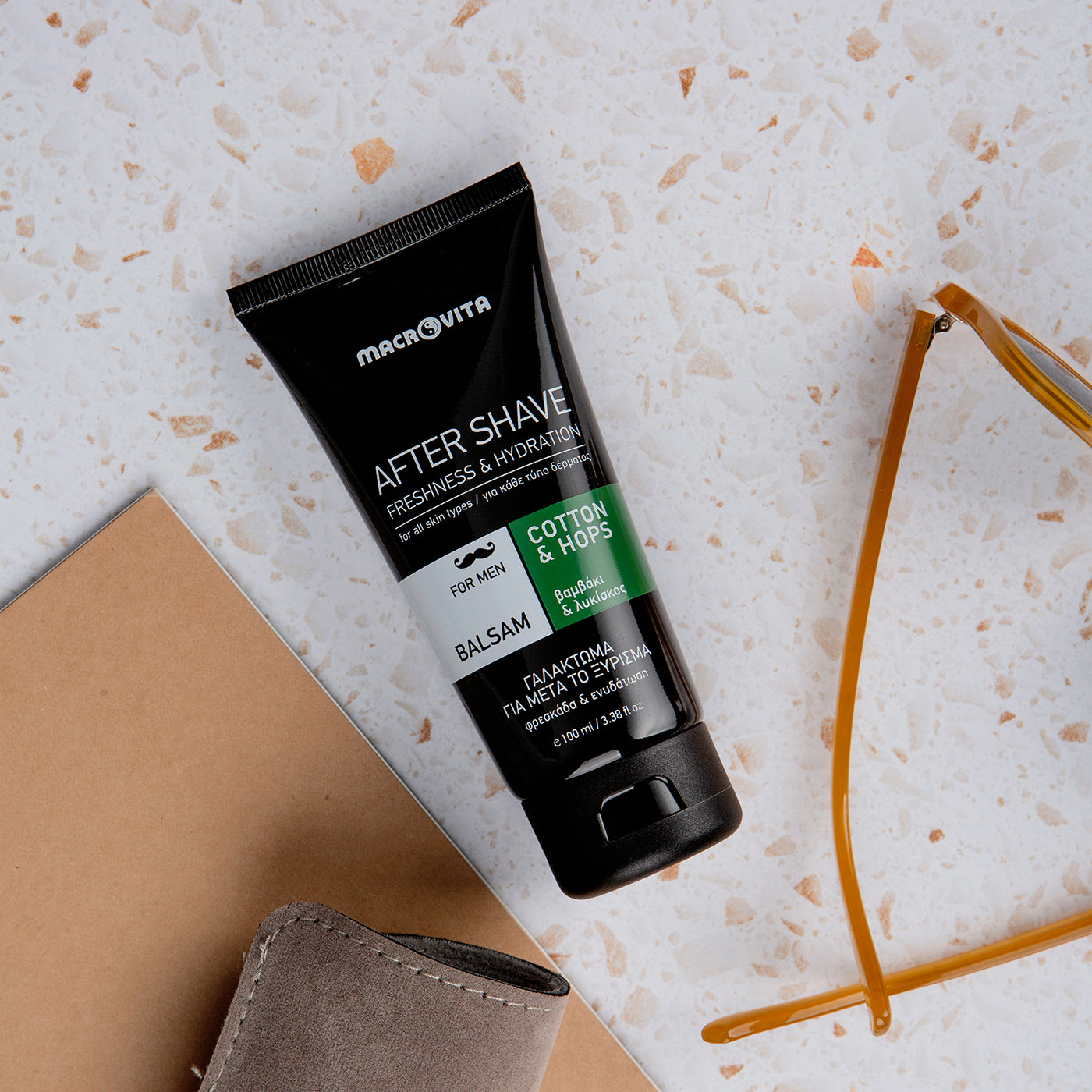 Met de verkwikkende aftershave balsem van Macrovita geef je je huid na het scheren optimale verzorging en verlichting zonder irritatie. De balsem herstelt effectief, vermindert roodheid en bultjes, en vitamine E dringt diep door om veroudering tegen te gaan. Kalmerende aloë vera hydrateert en verfrist de gevoelige huid, terwijl doeltreffende ingrediënten scheerirritatie verminderen. Ontdek de harmonieuze werking van natuurlijke elementen voor een verzorgde en soepele huid na elke scheerbeurt.