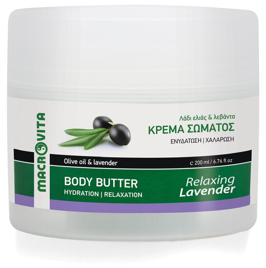 De Macrovita Body Butter Relaxing met lavendel is ontwikkeld voor wie behoefte heeft aan diepe huidverzorging op een holistische wijze. Deze intens voedende formule herstelt de natuurlijke huidbarrière, kalmeert irritatie en zorgt direct voor een glad, comfortabel huidgevoel. De rijke textuur smelt op de huid en wordt snel opgenomen, zonder vettig laagje achter te laten. Lavendelbloemenextract – in combinatie met biologische olijfolie, avocado-olie, aloë vera en sheaboter – werkt niet alleen verzachtend voor de huid, maar heeft ook een bewezen aromatherapeutisch effect: het helpt bij stressniveaus, bevordert rust en ondersteunt een betere nachtrust door het heerlijke gevoel van wellness en comfort.