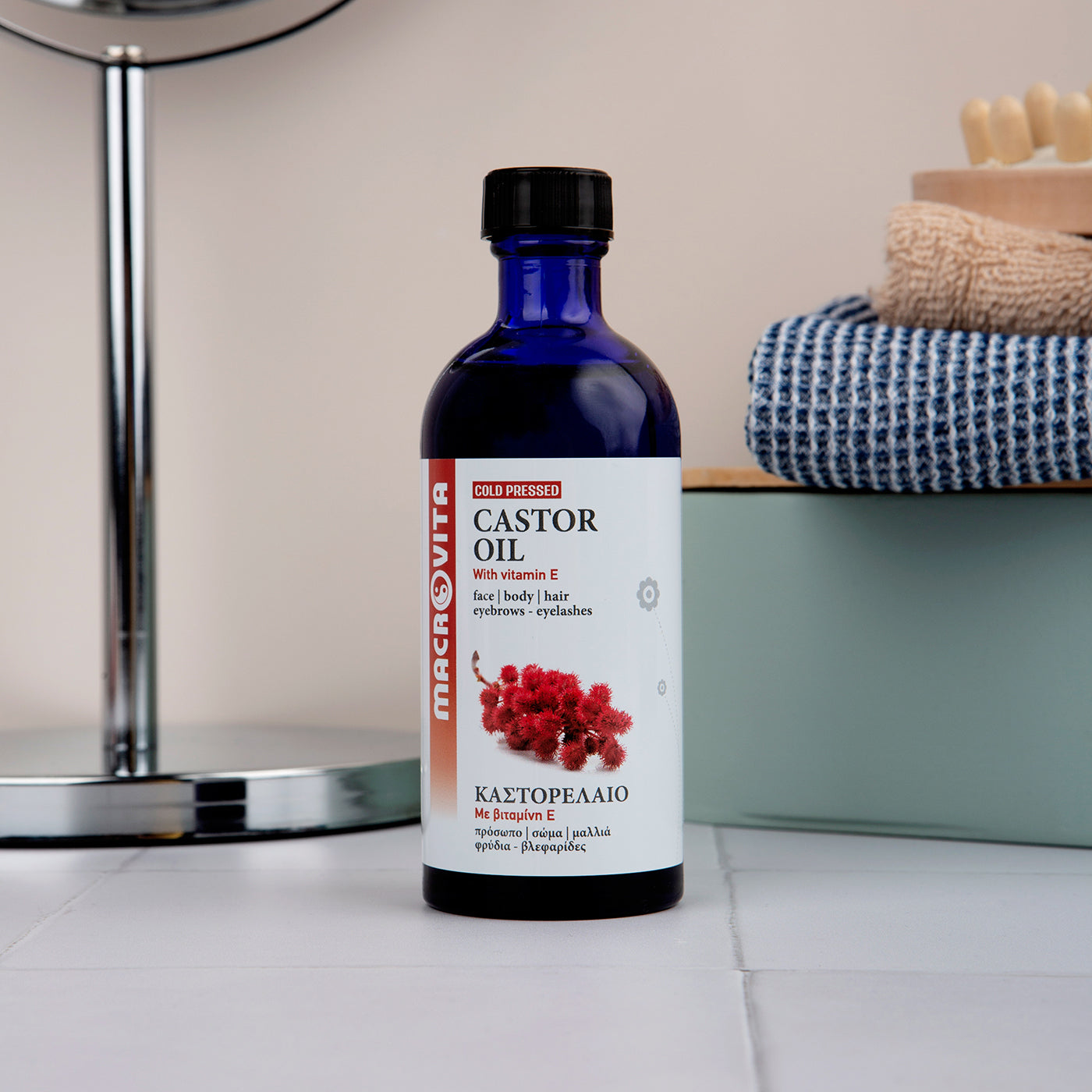 Castorolie van Macrovita voor het gezicht zorgt voor effectieve huidverbetering en -verjonging. De werkzame stoffen in de natuurlijke castor olie voor gezicht penetreren diep in de huid en bevorderen zo de aanmaak van collageen en elastine. Hierdoor vervagen droogtelijntjes en rimpels en wordt de huidelasticiteit verbeterd. Castorolie voor het gezicht zorgt voor een stralende huid, een prachtige textuur en vermindert irritaties, oneffenheden en onzuiverheden. Gebruik de castorolie in je favoriete crème of gebruik castorolie voor het gezicht als serum; breng hiervoor twee tot drie druppels aan van de olie en masseer totdat deze volledig is opgenomen.