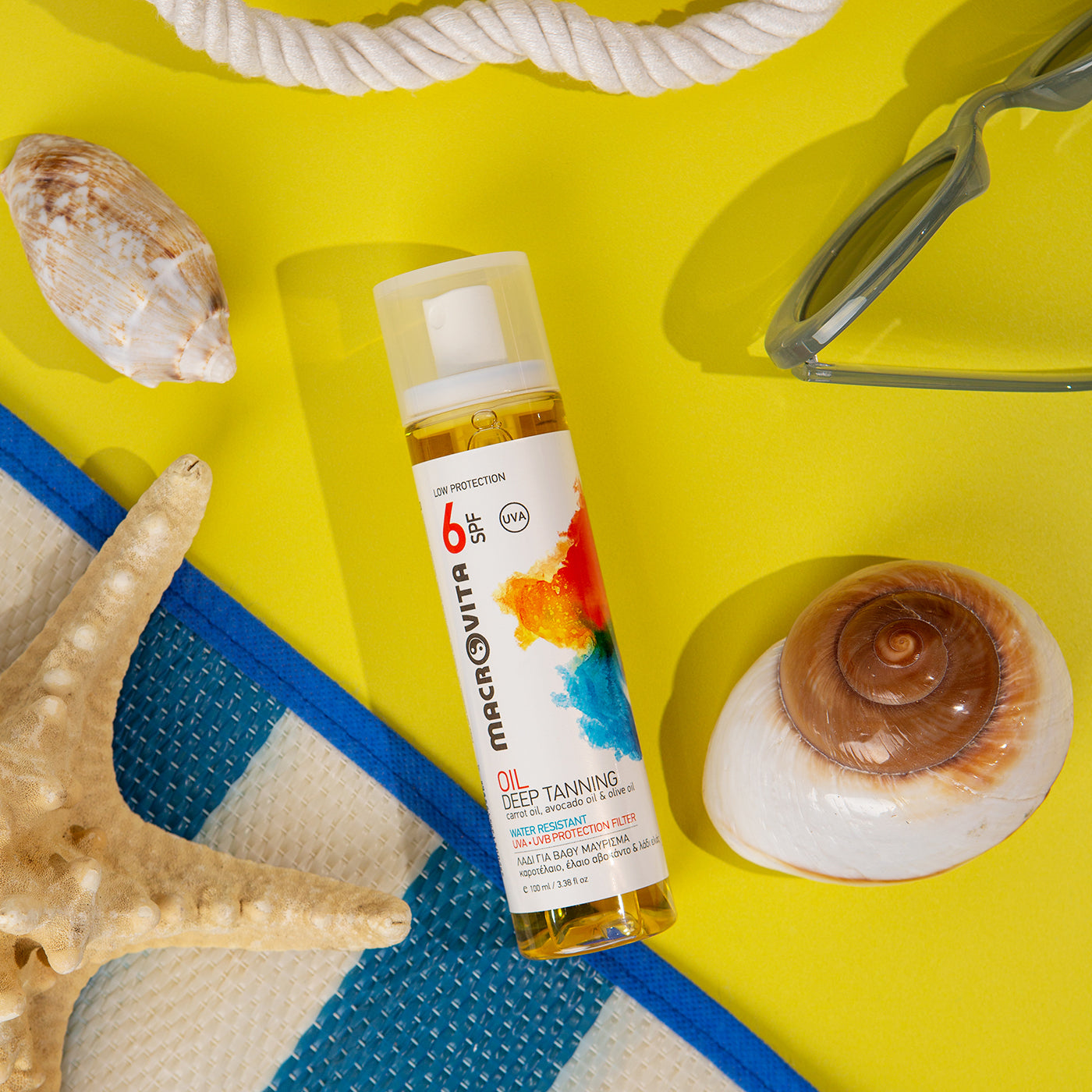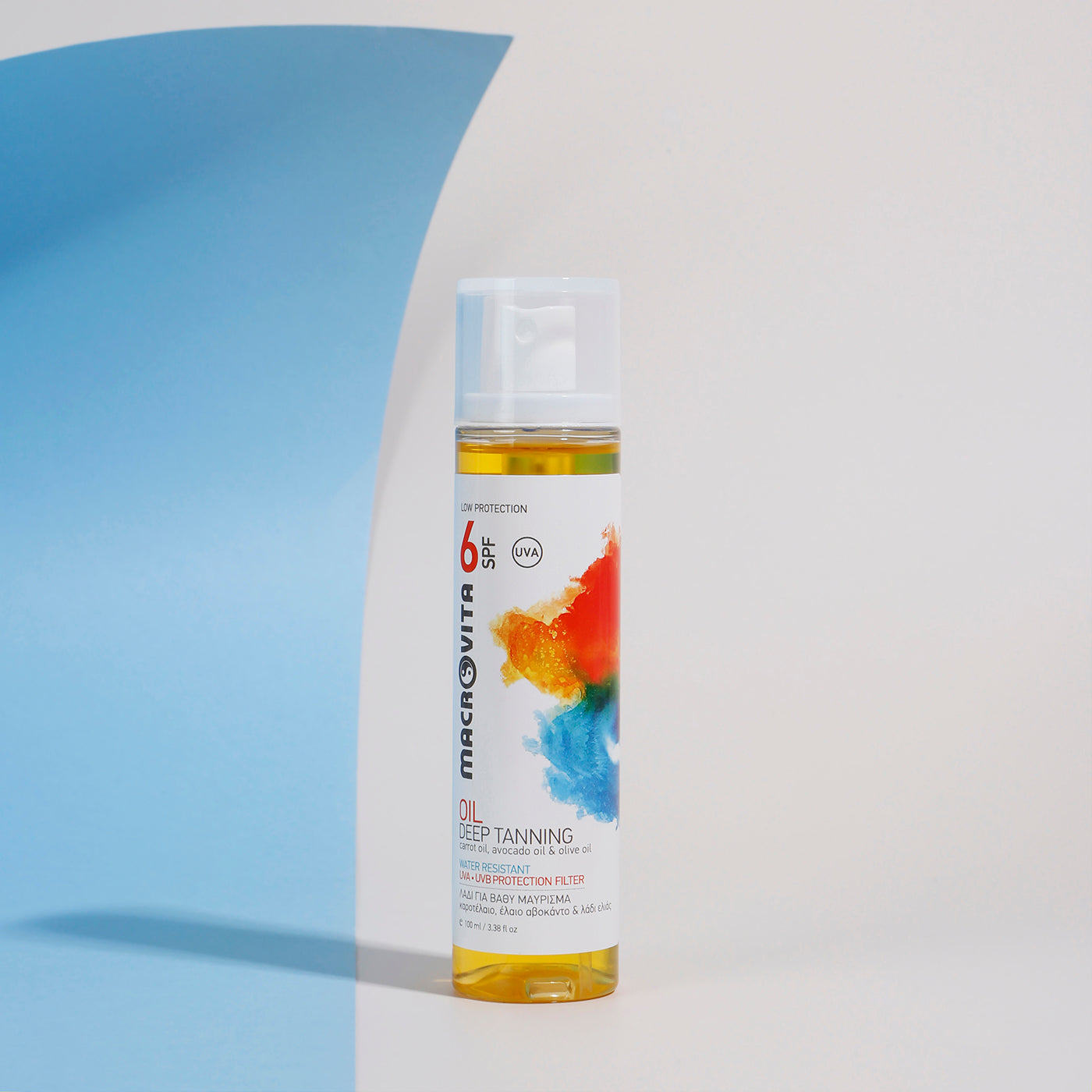 Veilig zonnen is van essentieel belang. Het is daarom altijd verstandig om een breedspectrum zonnebrand van minimaal SPF 30 aan te brengen als je gaat zonnen. Wel kan je, als je een extra bruining wil, eventueel onder je zonnebrandcrème, of op minder hete dagen en je bijvoorbeeld een kwartiertje even in de zon wil, de natuurlijke bruiningsolie met SPF 6 van Macrovita natuurlijke cosmetica gebruiken. Wortelolie bevat beta-caroteen, dit draagt bij aan een natuurlijke zongebruinde teint. In combinatie met een natuurlijke zonnebrandcrème kun je dus optimaal beschermd een prachtige kleur ontwikkelen. Maar ook als je al een zongebruinde huid hebt, is dit de perfecte olie om te gebruiken. Je kunt het namelijk ook prima als dry oil gebruiken om je zongebruinde kleur te accentueren en te verbeteren. Het zorgt instant voor een schitterende glans, een verfijnd parfum en diepe hydratatie. Dankzij het vitaminecomplex wordt de huid verbeterd en verzorgd en aanvullend beschermd, ook gedurende de avond. Voor een soepele, diep gehydrateerde, intens verzorgde en schitterende huid.