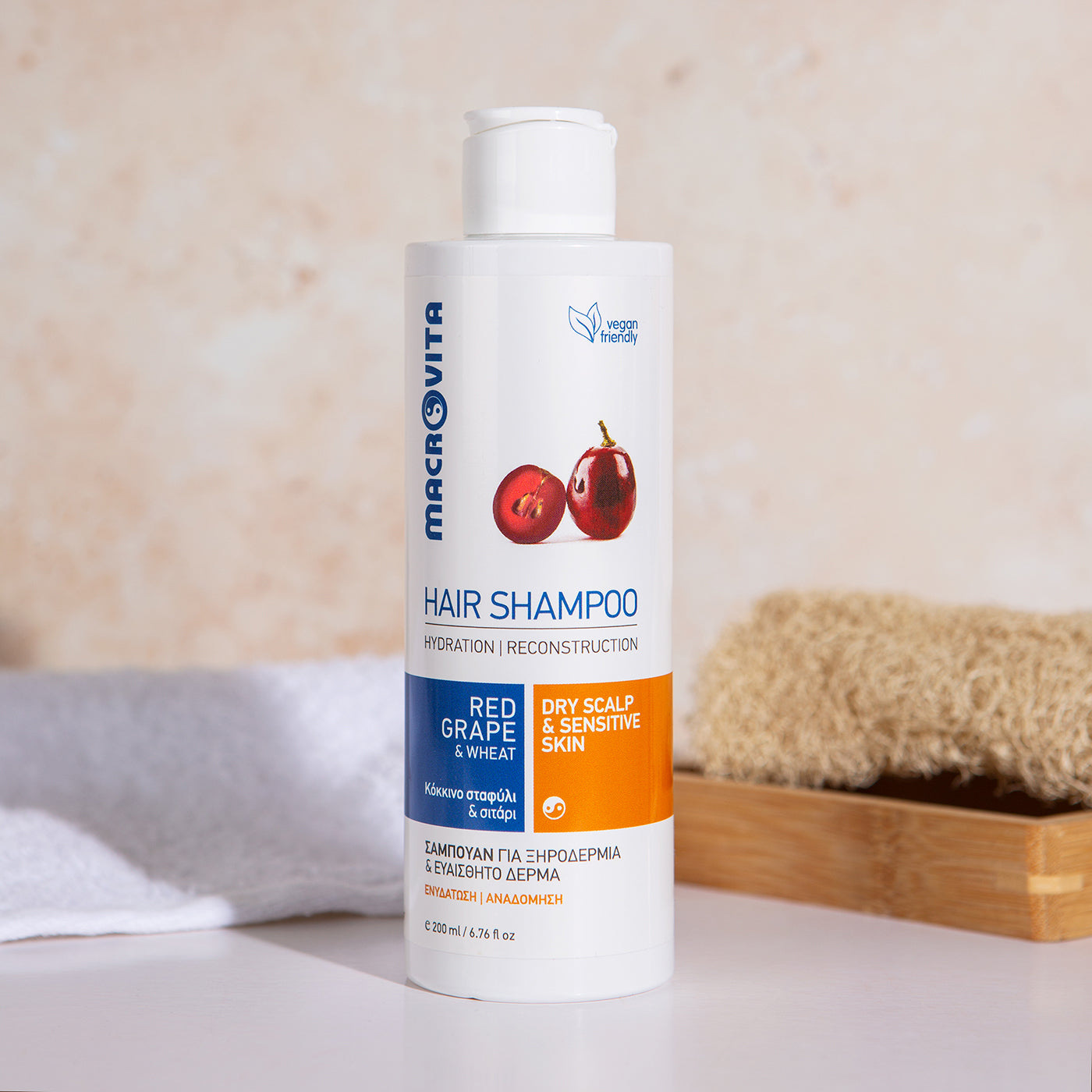 Eczeemklachten, psoriasis op de hoofdhuid, schilfers, jeuk en irritatie; met de natuurlijke shampoo voor de gevoelige en droge hoofdhuid van Macrovita pak je irritatie bij de bron aan. De shampoo voor een schilferende hoofdhuid die ook tekenen van irritatie laat zien biedt effectieve verzorging, hydratatie, kalmte en voeding. De sulfaatvrije formule herbalanceert de huidbarrière en geeft een schat aan verzorging, waardoor de hoofdhuid zelf kan herstellen en regenereren. Dit kan leiden tot minder jeuk en krabben, minder schilfers op de hoofdhuid en een vermindering van vlammende roodheid of irritatie. Probeer de shampoo voor de extreem gevoelige, schilferende hoofdhuid en jeuk zelf en geniet van een verzorgde haardos en zachte aanraking van de hoofdhuid.