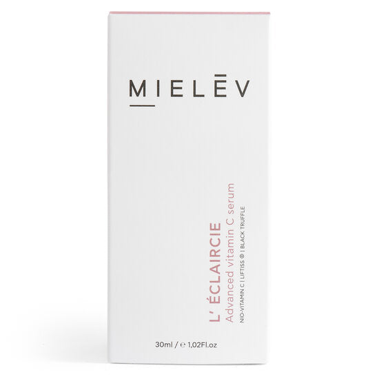 Het L’Éclaircie Advanced Vitamin C Serum van Mielēv is een innovatieve formule die de huid verstevigt, rimpels gladstrijkt en de teint verheldert. Dankzij Nio-Vitamin C, een geavanceerde vorm van vitamine C die 10x effectiever is dan traditionele varianten, helpt dit serum bij het stimuleren van collageenproductie en het verminderen van pigmentvlekken. Liftiss®, een biologisch baobabextract, geeft de huid direct een liftend effect en maakt haar zichtbaar steviger. De toevoeging van zwarte truffelextract biedt intense regeneratie, terwijl hyaluronzuur de huid diep hydrateert en voller maakt.
