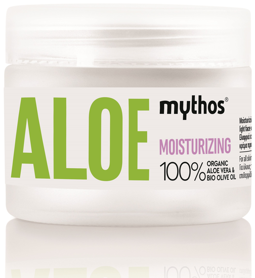 De microplasticvrije hydraterende crème met biologische aloë vera van Mythos strijkt beginnende rimpeltjes glad, vult droogtelijntjes in en geeft de huid een satijnzachte aanraking en prachtige gloed. Vooral onze nieuwe hydraterende gezichtscrème met aloë vera en talloze antioxidanten, vetzuren, mineralen, vitaminen en plantensterolen. Deze multitasker maakt de huid zijdezacht, zorgt voor een herstelde vochtbalans en een revitalisatie van de huid. Een echte mooimaker, dus!