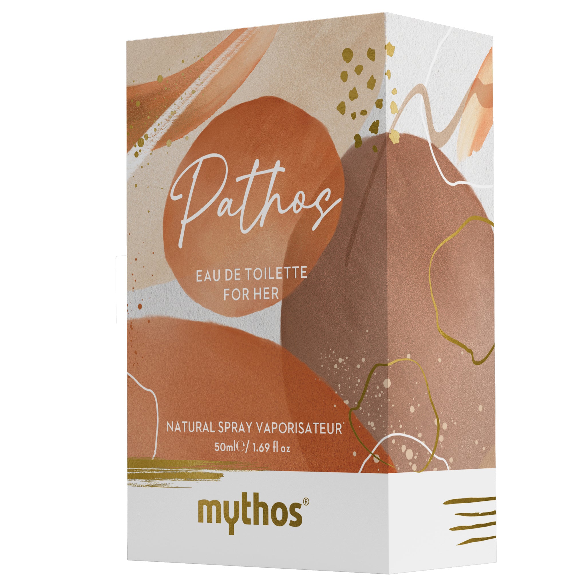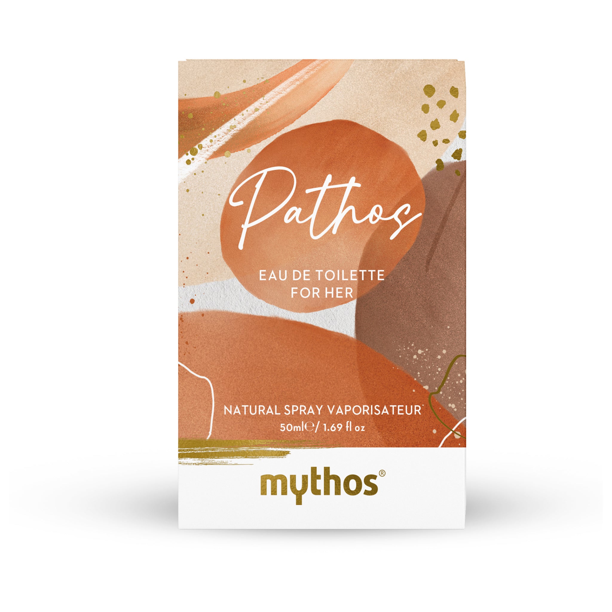 Parmantige elegantie. Luxe en comfort. Zalige zondagmiddagen, lopend door ontluikende lentebloesemtuinen. De eau de toilette Pathos van Mythos is delicaat, zinderend en bloemig. Het karakter van jasmijn wordt versterkt door de houttonen van patchouli en ylang-ylang. Oosterse mystiek, met westerse tonen van sinaasappel en een hint sinaasappelbloesem. Een parfum dat je omarmt en meevoert. De prachtige accenten, perfecte synergie van geurnoten creëren een intens geurenakkoord dat prikkelt, vloeit en je de adem beneemt.