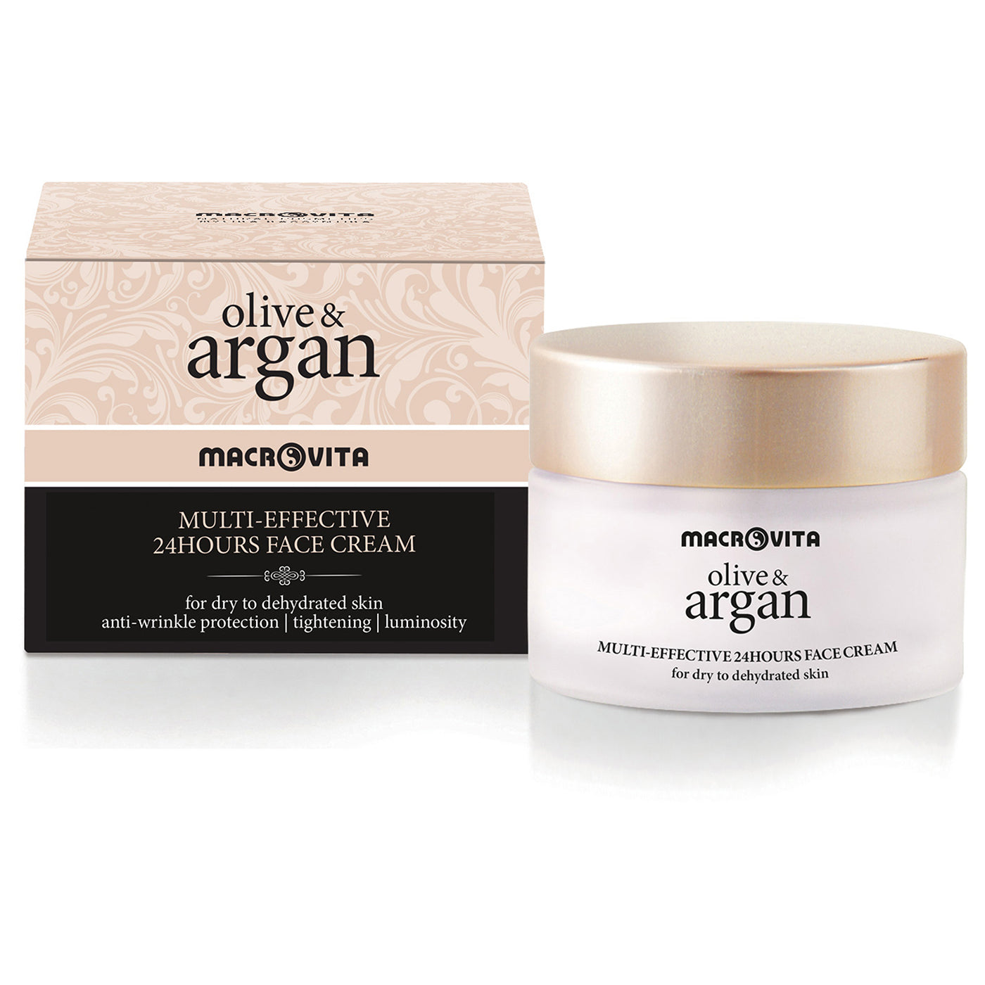 De Macrovita Olive & Argan Gezichtscrème voor de droge huid is geen standaard verzorgingsproduct. Dit is pure huidverwenning bij elke applicatie – speciaal ontwikkeld voor de veeleisende, droge of rijpere huid die behoefte heeft aan diepe voeding, hydratatie en herstellende kracht. Biologische arganolie, extra vierge olijfolie uit Kreta, hyaluronzuur, plantensterolen en krachtige botanische extracten werken in harmonie samen om de huid zichtbaar te transformeren en deze een nieuwe, jeugdige expressie te geven. Droge plekjes verdwijnen, de huid voelt soepeler, gladder en voller aan, en tekenen van vermoeidheid maken plaats voor een frisse, jeugdige uitstraling.