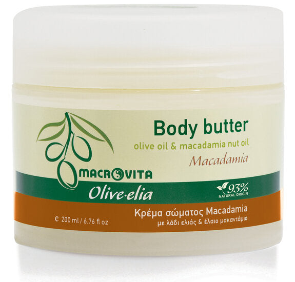 De Body Butter Macadamia van Macrovita Olive-elia biedt diepe hydratatie en verzorging voor de droge en gevoelige huid. Verrijkt met biologische oliën, sheaboter en macadamia-extract, voedt deze rijke body butter de huid intens en helpt het de natuurlijke elasticiteit te herstellen. De romige textuur trekt snel in zonder vettig aan te voelen, terwijl de huid zacht, glad en soepel blijft. Perfect voor dagelijks gebruik of als luxe verwenmoment voor een gehydrateerde, stralende huid.