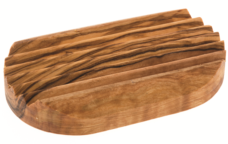 Na het gebruik kun je het olijfhout onder de kraan afspoelen. Droog het zeepbakje af en zet deze rechtop met de richels verticaal.